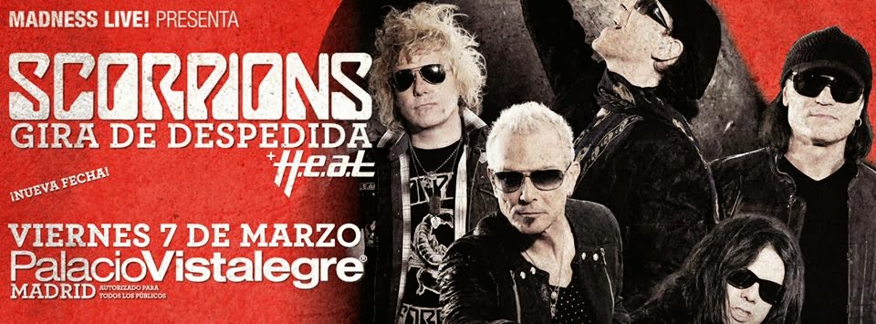 Scorpions han agotado todas las entradas para sus dos conciertos de despedida en el Palacio Vistalegre de Madrid los días 7 y 8 de marzo de 2014, tal y como informa la promotora Madness Live.