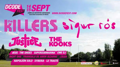 Tras anunciar hace unas horas a Sigur Ros, el DCode Festival, que celebrará su segunda edición los días 14 y 15 de septiembre de este año en la Universidad Complutense de Madrid, ha confirmado también a The Killers (se espera nuevo sencillo de la banda en junio y disco para septiembre), The Kooks, dEUS, Justice, Supersubmarina, Triángulo de Amor Bizarro, The Right Ons, Lüger, Napoleón Solo, The Shoes, Le Traste, Syberia y Eme Dj.
