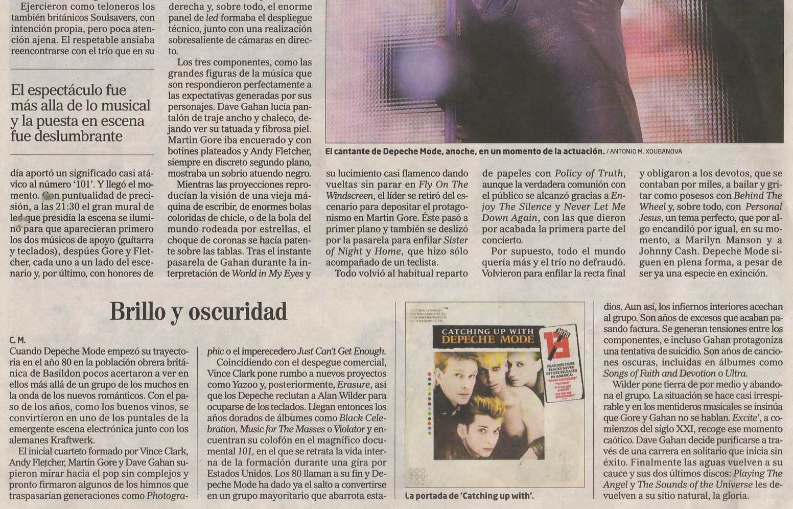 A mí me parecio un gran concierto, echando en falta algunos temas que personalmente me encantan pero es que Depeche es de esos grupos que podrían hacer tres conciertos de grandes éxitos así que no pondré pegas con el repertorio. El montaje me pareció muy original como nos tienen acostumbrados. Y sóno claro ypotente, por lo menos desde donde yo estaba situado. Respecto a mucha gente que deambulaba por allí es un poco lamentable. Ahora se supone que para mucha gente que no tiene interés por la música más allá de Bisbal es cool ir a este tipo de conciertos, tirarse 1 hora grabando con el móvil para no disfrutar del concierto y luego poder decir en la oficina "mira estuve allí". Tuve la misma sensación que viendo a The Cure en el Palacio el año pasado, había gente que estaba perdidísima con sus jerseys Ralph Lauren al hombro… en fin. Otra historia es la organización en el Palacio con esas colas interminables… y siempre pasa lo mismo!! Es que no pueden abrir antes? Bueno obviando aspectos extramusicales al final salí muy satisfecho del concierto y hoy no he parado de escuchar "Home" con una sonrisa… al fin y al cabo de eso se trata ¿no?