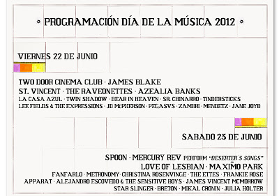 Spoon, Bear in Heaven, Star Slinger y JD McPherson se han incorporado este martes al cartel del Día de la Música 2012, que tendrá lugar los días 22 y 23 de junio en el Matadero de Madrid.