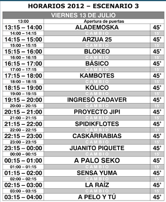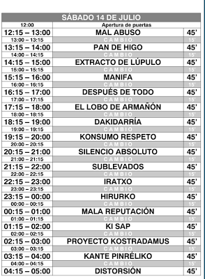 La decimoquinta edición del festival Aúpa Lumbreiras, que tendrá lugar los días 13 y 14 de julio en Villena (Alicante), con formaciones como Pennywise, Boikot, Soziedad Alkoholika, Rosendo, Barricada, Fuckop Family o Manolo Kabezabolo, entre otros muchísimos, ya ha desvelado sus horarios. Entradas a la venta e Ticketmaster e información en www.aupalumbreiras.com