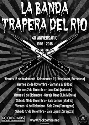 Al concierto de regreso el 18 de noviembre en L’Hospitalet, La Banda Trapera del Río suma seis más a su gira de 40 aniversario en Bilbao, Valencia, Murcia, Madrid, Tarragona y Zaragoza. Entradas en rockbombs.net.