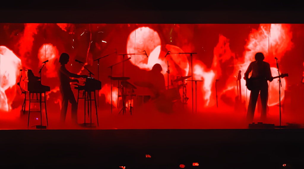 Subió algo la intensidad del concierto con «Don’t Be Light», en la que el show lumínico de la caja oblonga se empeñó en llevarle la contraria al título. En las pantallas, unos carnosos labios rojos a la manera de The Rocky Horror Picture Show parecían querer incitarnos a algo, pero sinceramente, los temas de Air no están pensados para excitar. La máquina de humo hizo horas extra y la caja viró hacia un rojo intenso que evocaba un incendio, logrando así la pantomima de que el concierto había alcanzado algún clímax. Sirvió para que los tres intérpretes recibieran una buena ovación en su primera genuflexión de despedida, apenas setenta minutos después de comenzar.