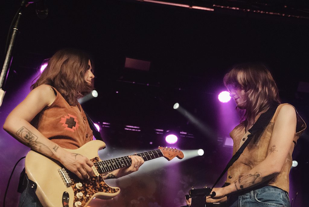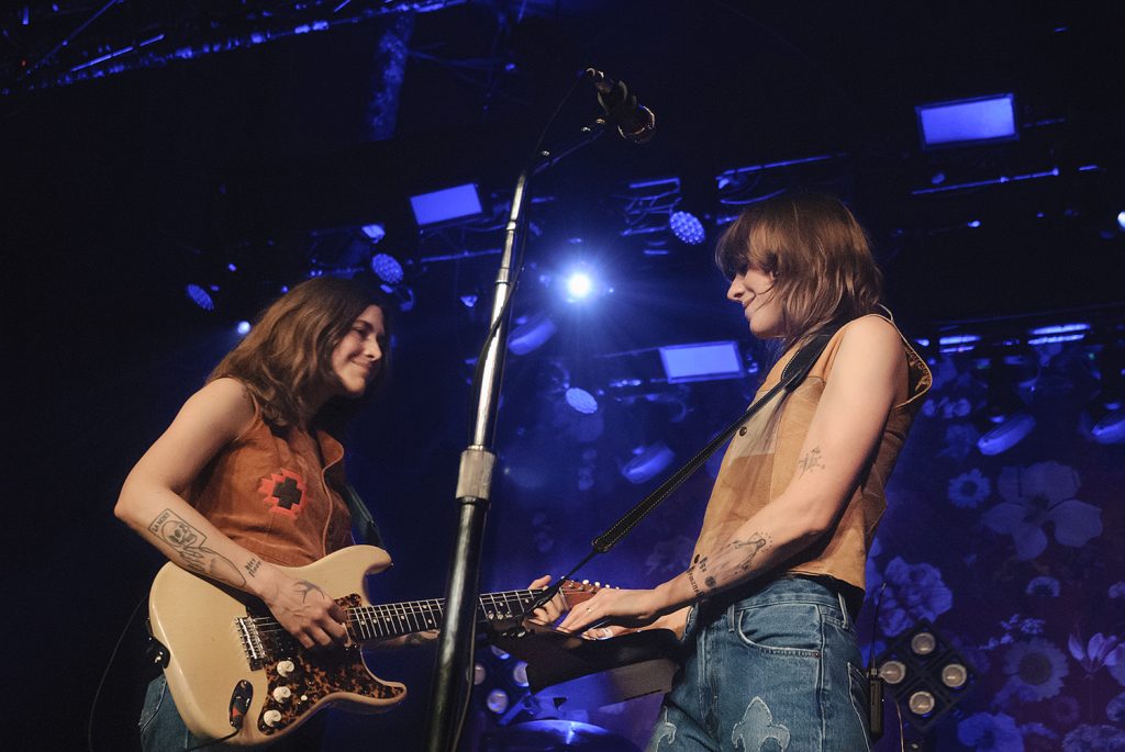 La presentación escénica de Larkin Poe está pensada para engrandecer a las hermanas Lovell, que son las que ocupan el centro del proscenio, mientras que los tres músicos masculinos que las secundan (con teclado, bajo y batería) forman un semicírculo en segundo plano. Una imagen digna de acompañar la descripción de «empoderamiento femenino» en su entrada de Wikipedia.