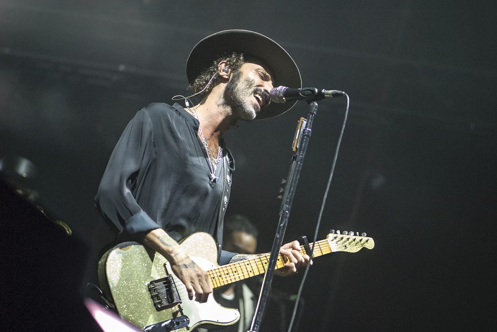 Pareciera como si el tímido Leiva quisiera esconderse siempre bajo el ala de su sombrero, como si tratara (fútilmente) de esquivar las miradas de las 10.000 personas allí reunidas. Por cierto, casualidad o no, los fotógrafos solo podían ubicarse en el lateral del escenario por el que Leiva, tuerto del ojo izquierdo, sí es capaz de ver. Como si no quisiera perder comba de todo lo que pasaba frente a él.