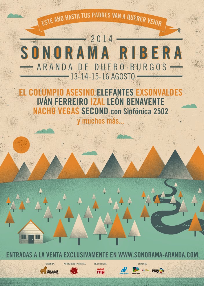El Sonorama Ribera de Aranda de Duero (Burgos), que celebrará su edición de 2014 del 13 al 16 de agosto, ha confirmado este lunes a los primeros artistas de su cartel: El Columpio Asesino, Elefantes (esto ya lo había anunciado la propia banda), Exonvaldes, Iván Ferreiro, Izal, León Benavente, Nacho Vegas y Second (con la Sinfónica 2502). Los abonos ya están a la venta en www.sonorama-aranda.com al precio promocional de 42 euros.