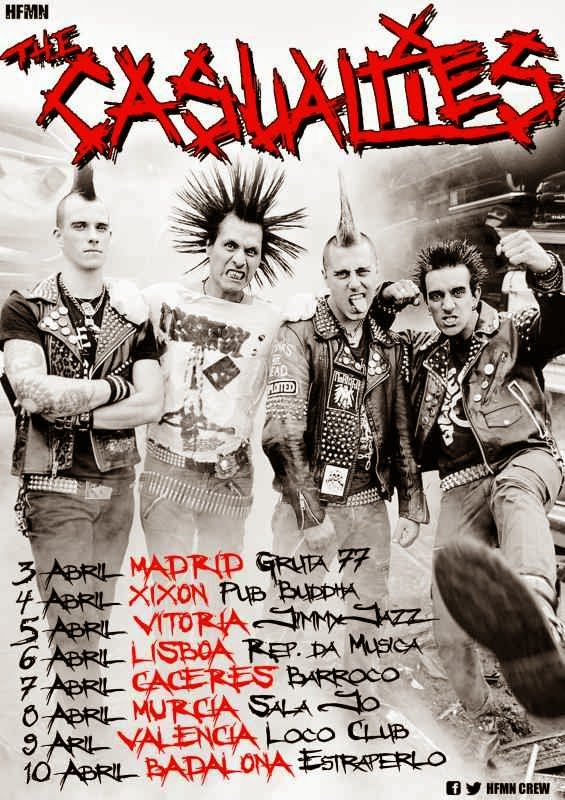 Desde las calles de Nueva York en la década de los noventa, inspirados por grupos como The Exploited, Sex Pistols o GBH, The Casualties formaron su propio estilo con música repleta de rabia y poderosos ‘sing-alongs’. Un total de 8 discos, 3 EPs y 3 discos en directo forman la extensa discografía del grupo, que nos visita ahora en abril para repasar sus grandes éxitos:
